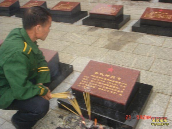 现场有六具烈士的遗体,遗体上都长满了一堆堆的蛆,满身都是虫子,一阵阵的恶臭扑鼻而来,非常难受。这些烈士是ffice:smarttags\" />二月十八日牺牲的,据说:当时仍有两名战士并没有牺牲,只是受了重伤,要求民工担架队员将烈士伤员抬回。在路上,由于天黑了,又遭到越军的袭击,担架队员掉下尸体、伤员在那里,自己就逃回担架队了,结果受伤的战友被越军打死了。第二天担架队又派人去抬,但由于地形复杂,找不到遗体的位置,就这样遗体就丢在那里二十天了。我走近烈士遗体时,看见有两三名烈士的大腿肉已被野兽或者家狗吃掉了,露出了大腿骨头,我叫每个班负责两具遗体。由于尸体腐烂和恶臭,战士们一开始还不敢动手。连长见状就发了火,骂我排的战士对烈士没有感情,还不快一点动手。我带着几个班长,首先动手搬遗体,一动遗体就见一团团蛆虫在蠕动,恶臭扑鼻而来,虽然我带着防毒面具,可能带得不合适,仍闻到一些臭味。原站在一旁的两位向导,闻到臭味也走开了。接着全排的战士们就马上行动起来,摆雨衣的,搬遗体的,基本上每个人都忘了起来,很认真地完整地把遗体搬上了军用雨衣。其中一具遗体是我团九连的副连长,叫邓万兴,由于他是穿干部服装,很容易就辨认出来。我叫四班长检查了一下,看他身上有没有贵重的物品或者有没有人民币。经检查他身上没有人民币等物品,但有一块手表,是戴在左手上方的手臂上的,经分析邓万兄可能受伤后,仍没有死,他怕手表被人拿走,就移动到手臂上,那时的手表是很贵重的。四班长向我报告后,我就把他的衣袖拉起,看到他的手臂已发紫发肿了,手表在手臂上戴的很紧了。我用力才将手表拿了出来,交给连长。连长和团里的两位干部战前都和邓副连长很熟,他们也分析了邓万兴把手表移动到手臂上方的原因,还说了是什么牌子的手表,当时我听说像是上海牌的,很值钱,连长随后交给团政治处的一位干部。ffice ffice\" /> 讲起邓万兴副连长,我连也应该感谢他,在十八日让涌战斗中他带领九连主攻排在前头进攻,吸引越军主力向他们进攻,他们歼灭了让涌北面的大部分越军,从而有力地支援我连在让涌西面的进攻。据我了解,在对越自卫反击战里,我团牺牲的干部中,给家庭造成影响最大的是:一是九连副连长邓万兴;二是三营副营长柳利林。 邓万兄,一九六五年十月入伍,广东省东莞县人,由于他已年满了三十五岁,战前已办理了家属随军的手续。按部队一般的情况,像邓万兄这样兵龄长、职务低的部队干部(关于邓万兴战时仍当副连长的事,我战后打电话问了邓万兴的最友好战友,战时的三营七连指导员黄荣茂。黄说:“现在也无法讲清楚了,但总感到邓万兴是个老实听话的人。”因为战前我部队扩编,我师由乙种师扩编成甲种师,干部的编制都增加了。许多连排干部都调升了职务,邓万兴已经是当了几年副连职的干部了,不但没有调升,反而是平职从七连调到新组建的九连,因为新组建的连队是不如老连队好,那时该营长姚焕伦都是和邓万兴一齐入伍的,也是同为东莞老乡),邓万兄办好了家属随军手续后,一般的情况下应该很快就安排转业了。如果不是上战场,一九七九年下半年部队那批转业干部他很可能安排转业了,这样夫妻双双就回东莞县安排工作,一家人过着幸福的生活。结果对越自卫还击打响,他就牺牲了。就是由于这样结局,他的老婆无法接受这个打击,思念丈夫过度,不久病倒了,最后发展到病疯了,不久也去世了,剩下孤单的小孩,好好的一个家庭,就这样完了。 我排搬好烈士遗体后就往回抬,在我们往回走时,之前在吃尸体的那两只狗,公然还跟着我们后面走,好像我们抢了他的食物一样。这两只狗在我们来时,它还在咬我们烈士的遗体,已经激起了我的愤怒,现在我们走了,它还跟着。我和连长打了个招呼后,就在排里拿了一支步枪,跪姿瞄准其中一只狗,枪声一响那只狗就倒下来了。一会儿那只狗又站了起来,但拐着一条腿边逃边叫。由于我排很快就离开那里,现在越军就算听到枪声,也来不及赶到这里了,我开枪后连首长和团里的机关人员叫我排赶快离开,我排就抬着尸体沿公路方向走去。 每个班抬两具烈士的遗体走是很艰难的,要是平时都算不了什么,但在越南战场艰苦的日子里,战士们都没有休息好,也没有吃好,每天吃的只是干粮和生水,战士们身上还背着近有二十斤重的枪支弹药等东西。此时的遗体已发胀发臭了,抬遗体的战士还带上防毒面具,走的是小路山路,还要预防越军越南公安 和其它武装人员的袭击。没有抬烈士的战士必须保持高度的警惕防止越军袭击。但不管怎么样,我们都要将烈士抬回祖国,让烈士回国入土为安。一路上遗体里长的虫子往下掉,有些虫子掉到战士们的裤子和鞋子上,发出阵阵恶臭。其实我和大多数的战士都没有戴防毒面具。有的战士原先戴好了,又把它脱掉了,因为戴着防毒面具搬遗体和抬遗体都很不方便,闻到了臭味只能忍着。我叫各班的战士经常轮换抬烈士,我见五班一名战士很累的样子,叫他让给我抬一会,但是五班长和那位战士都不让我抬,五班长对我说:“排长,这里的地形复杂,越军可能袭击我们,我们班的任务,我会安排好的”。各班抬着烈士遗体走了两个多小时的路后,才艰难地到达了公路。 到达了公路,我和全排的战士都松了一口气,一路上没有遭到越军的袭击,今天我排全体战士面